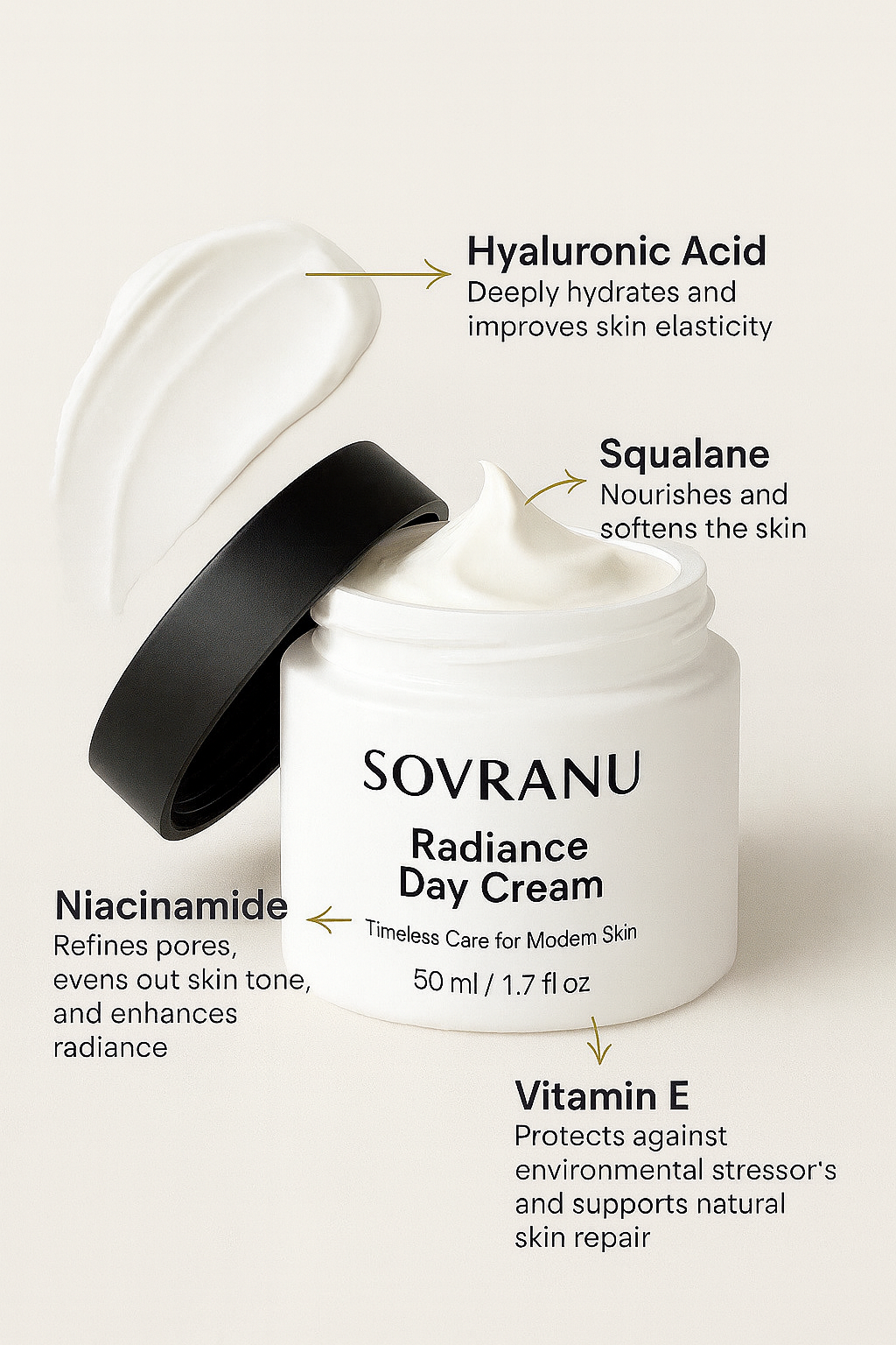 A lightweight, hydrating day cream that boosts radiance, protects against environmental stressors,and keeps your skin supple throughout the day.